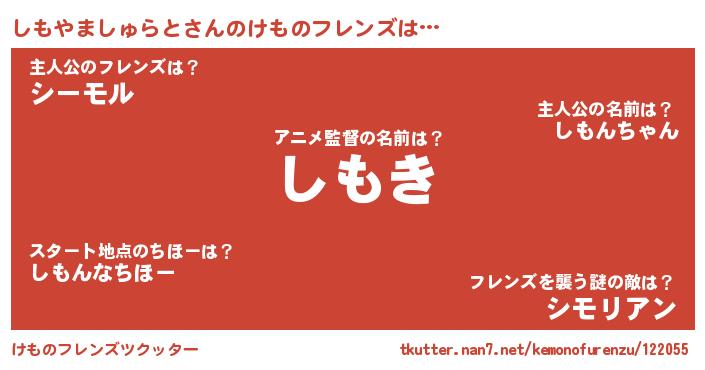 | 意味不明あだ名 | 『とにかく怪しいしもやましゅらと』 |