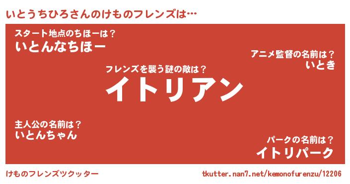 | 男性向けラノベタイトル風あだ名 | 『おまえをオタクにしてやるから、俺をいとうちひろにしてくれ! 』 |