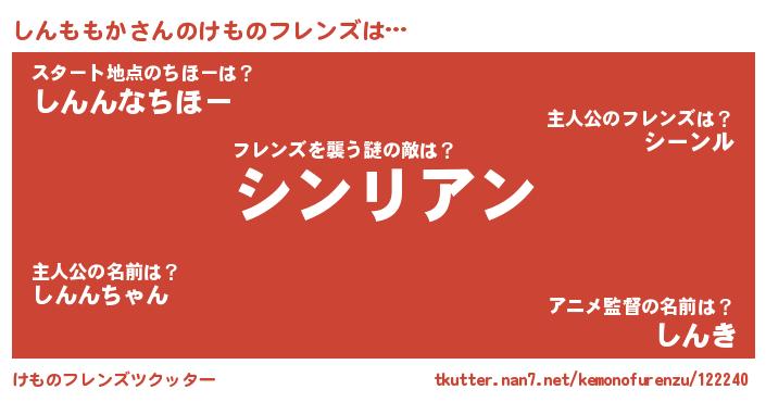 | ヒーロー風カッコイイあだ名 | 『天空の使者しんももか』『幻影騎士シン』 |