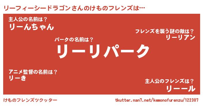 | 男性向けラノベタイトル風あだ名 | 『Re:リーフィーシードラゴンから始める異世界生活』 |