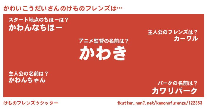 | ヒーロー風カッコイイあだ名 | 『魔戒騎士カワ』『ネオカワイコウダイ』 |