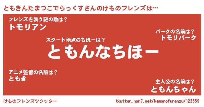 | 女子向けラノベタイトル風あだ名 | 『ともきんたまつこでらっくすの雑貨屋さん』 |