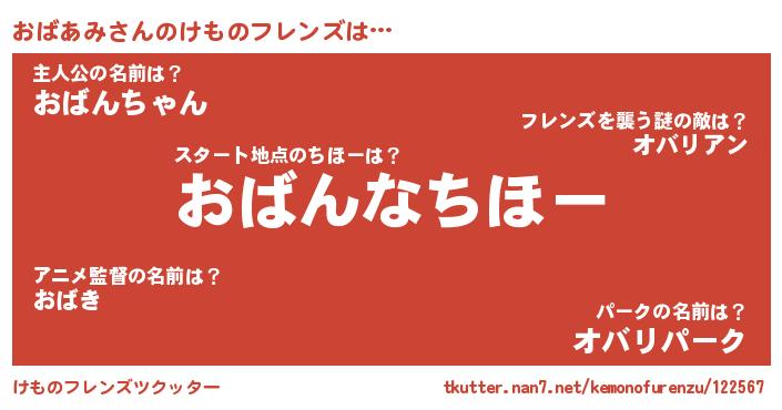 | 2回繰り返すあだ名 | 『おおばば』『じくじく』『おばおば』 |