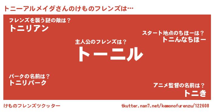 | 意味不明あだ名 | 『住所不定無職トニーアルメイダ(39歳)』 |