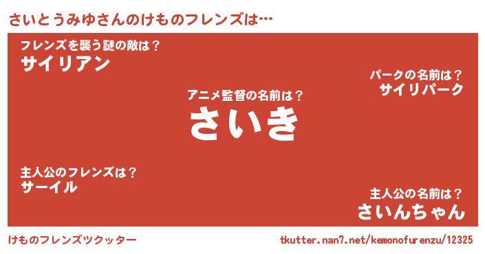 | 意味不明あだ名 | 『しいたけ科さいとうみゆ属』 |
