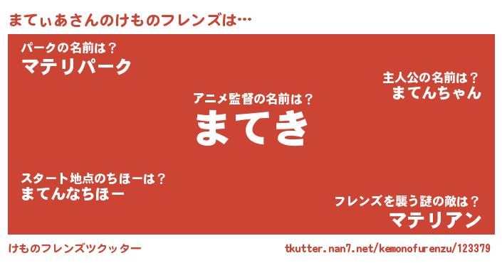 | 2回繰り返すあだ名 | 『あんあん』『もちもち』『まてまて』 |