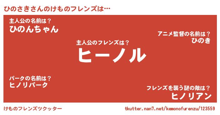 | 男性向けラノベタイトル風あだ名 | 『この素晴らしい世界にひのさきを!』 |