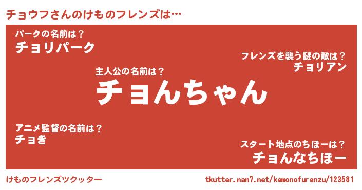 | 意味不明あだ名 | 『ペロリンチョウフ』『自称チョウフ』 |