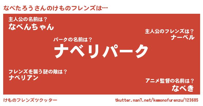 | 意味不明あだ名 | 『自称なべたろう』『ペロリンなべたろう』 |