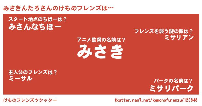 | 意味不明あだ名 | 『住所不定無職みさきんたろ(4歳)』 |