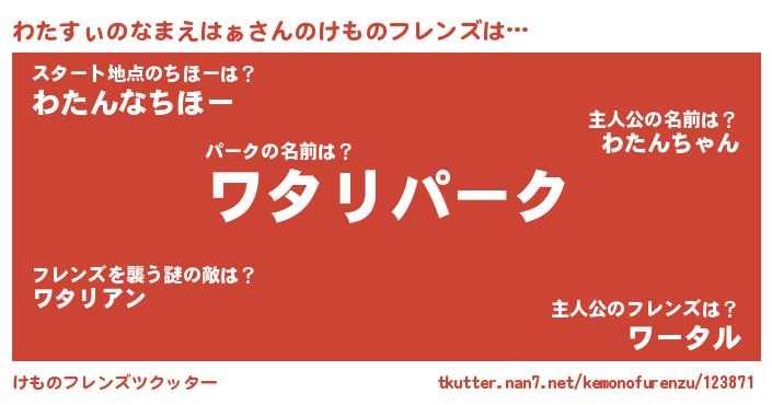 | ファンタジー風あだ名 | 『ゼワタトゥ』『カークワタラー』 |