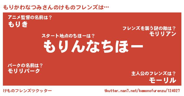 | 男性向けラノベタイトル風あだ名 | 『うちの娘の為ならば、俺はもしかしたらもりかわなつみも倒せるかもしれない。』 |