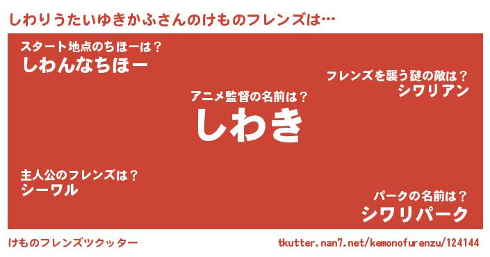 | 料理風あだ名 | 『しわりうたいゆきかふのカルパッチョ風』 |