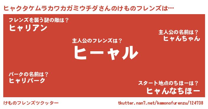 | ヒーロー風カッコイイあだ名 | 『ネオヒャクタケムラカワカガミウチダ』 |