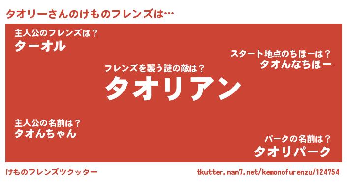 | ヒーロー風カッコイイあだ名 | 『慈愛の使者タオリー』『ネオタオリー』 |