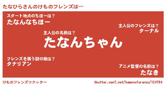 | ヒーロー風カッコイイあだ名 | 『スーパータナヒラ』『銀牙騎士タナ』 |