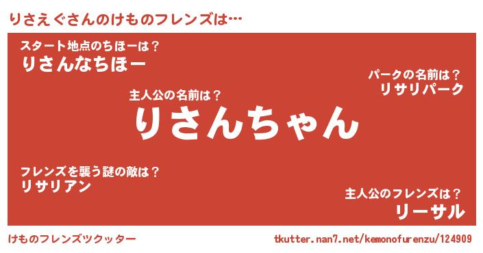 | 2回繰り返すあだ名 | 『りさりさ』『どくどく』『りりささ』 |