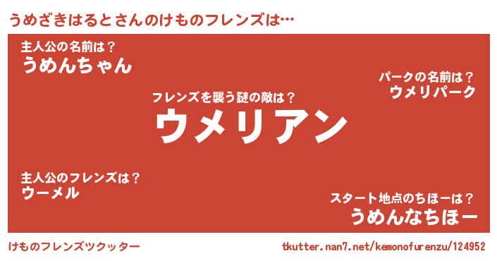 | ポケモン風あだ名 | 『ウックウザ』『ウメチュウ』 |