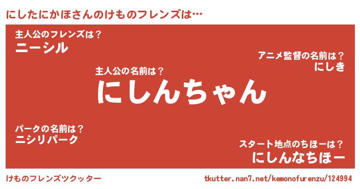 | 男性向けラノベタイトル風あだ名 | 『にしたにかほ~年齢イコール彼女いない歴の魔法使い~』 |