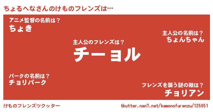 | 男性向けラノベタイトル風あだ名 | 『ちょるへなという概念が存在しない退屈な世界 』 |