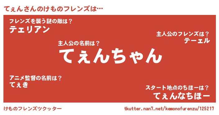 | 意味不明あだ名 | 『つくし科てぇん属』『ペロリンてぇん』 |