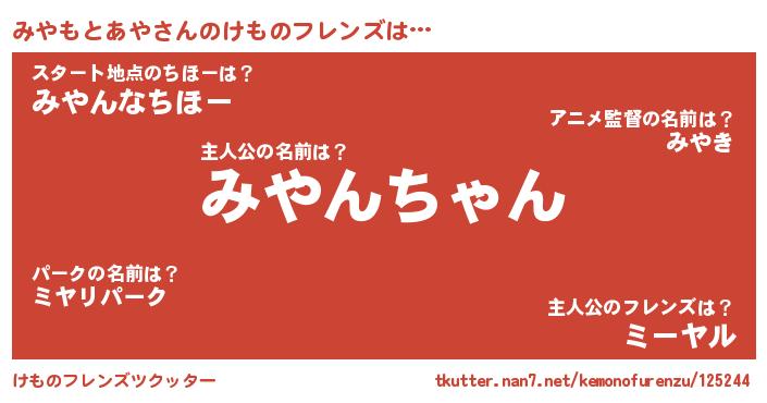 | ファンタジー風あだ名 | 『ミヤフェル』『カークミヤラー』 |