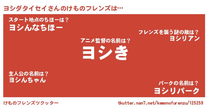 | ポケモン風あだ名 | 『ヒヨシダタイセイ』『ヨシキング』 |