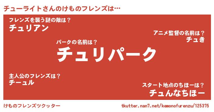 | 男性向けラノベタイトル風あだ名 | 『Re:チューライトから始める異世界生活』 |