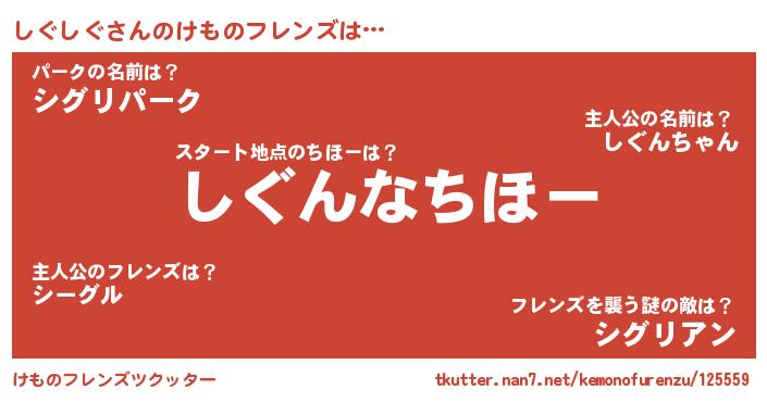 | ヘコむあだ名 | 『酢こんぶ』『しぐにー』『しぐっぺ』 |