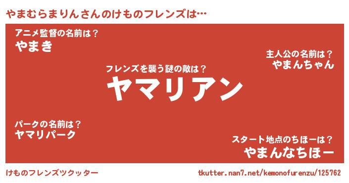 | 伝説のあだ名 | 『人々から恐れられる錬金術士やまむらまりん』 |