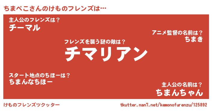 | ヘコむあだ名 | 『ちまぺこ(遠い目)』『ちまにゅー』 |
