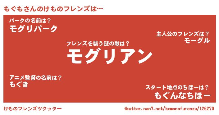 | ヒーロー風カッコイイあだ名 | 『愛の使者もぐも』『最強戦士モグモ』 |