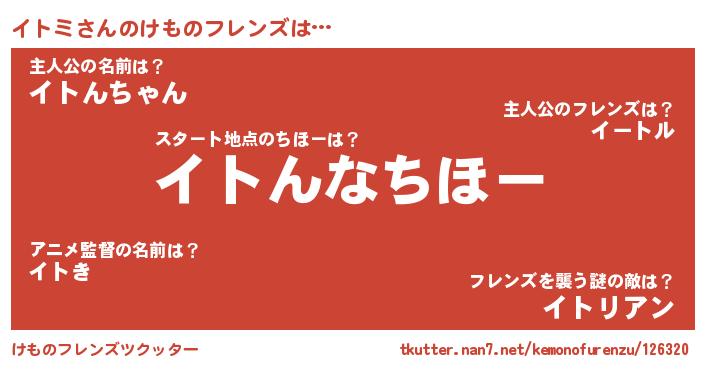| 2回繰り返すあだ名 | 『イイトト』『じょぼじょぼ』 |