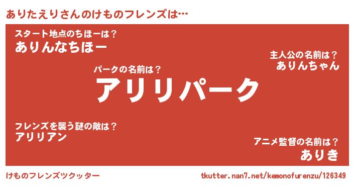| 意味不明あだ名 | 『自称ありたえり』『ペロリンありたえり』 |