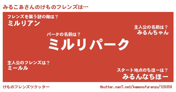 | 男性向けラノベタイトル風あだ名 | 『魔弾の王とみるこあ』『緋弾のミルコア』 |