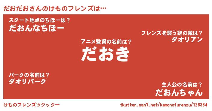 | ヒーロー風カッコイイあだ名 | 『天弓騎士ダオ』『ウルトラだおだおマン』 |