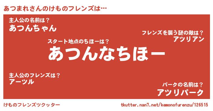 | 2回繰り返すあだ名 | 『ああつつ』『あつあつ』『まきまき』 |