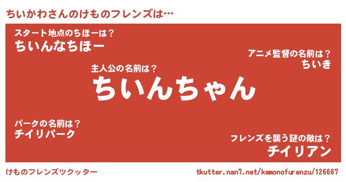 | ファンタジー風あだ名 | 『チイフェル』『エターナルチイカワー』 |