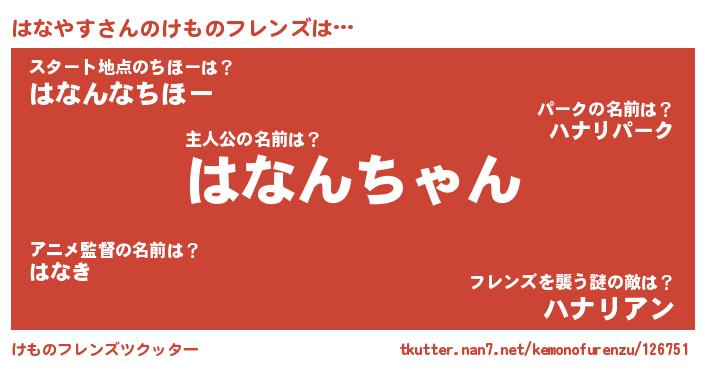 | ファンタジー風あだ名 | 『ハナフェル』『エターナルハナヤスー』 |