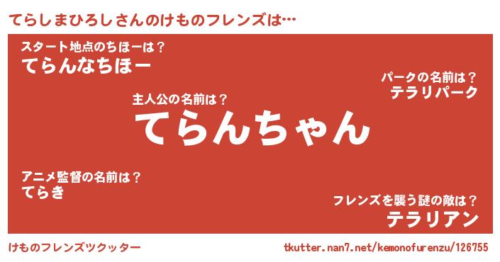 | 意味不明あだ名 | 『住所不定無職てらしまひろし(40歳)』 |