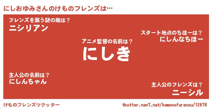 | ヘコむあだ名 | 『にしぷりん』『にしおゆみ(笑)』 |