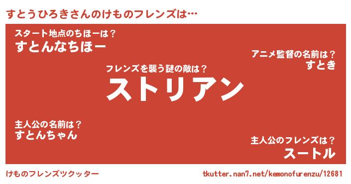 | 男性向けラノベタイトル風あだ名 | 『おまえをオタクにしてやるから、俺をすとうひろきにしてくれ! 』 |