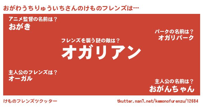 | 男性向けラノベタイトル風あだ名 | 『おまえをオタクにしてやるから、俺をおがわうちりゅういちにしてくれ! 』 |