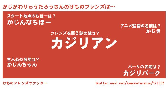 | 男性向けラノベタイトル風あだ名 | 『かじかわりゅうたろうに滅ぼされるだけの簡単なお仕事です』 |
