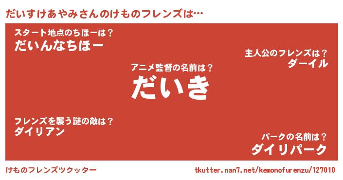 | 意味不明あだ名 | 『とにかく怪しいだいすけあやみ』 |