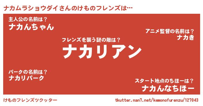 | ヒーロー風カッコイイあだ名 | 『慈愛の使者ナカムラショウダイ』 |