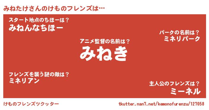 | 意味不明あだ名 | 『とにかく怪しいみねたけ』 |