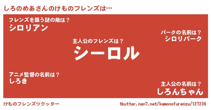 | ヘコむあだ名 | 『しろのめあ(爆)』『しろっふぃ~』 |
