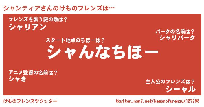 | 男性向けラノベタイトル風あだ名 | 『シャンティアに滅ぼされるだけの簡単なお仕事です』 |
