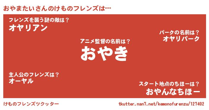 | 2回繰り返すあだ名 | 『うろうろ』『へろへろ』『おおやや』 |